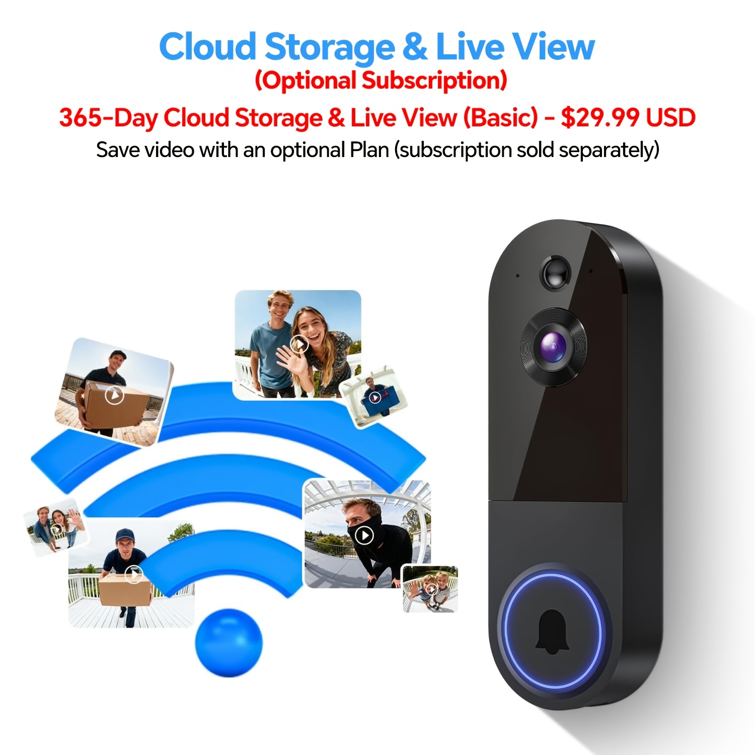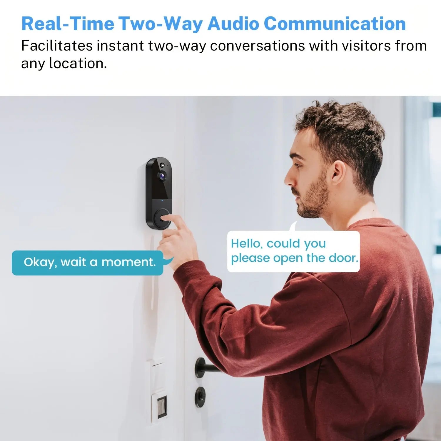 1440P Wireless Smart Doorbell, WiFi Camera, Night Vision Function, Artificial Intelligence Snapshot, Rechargeable Battery, Photo And Video Taking, Two-way Intercom, Local Storage