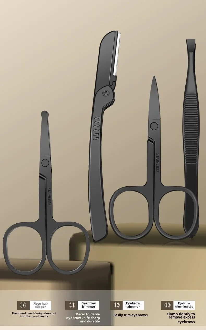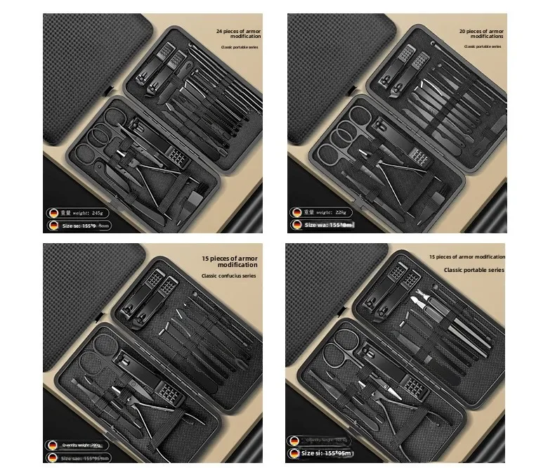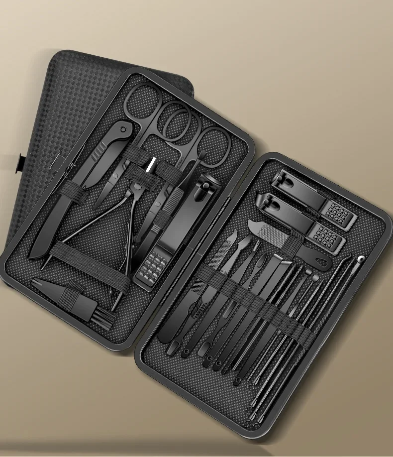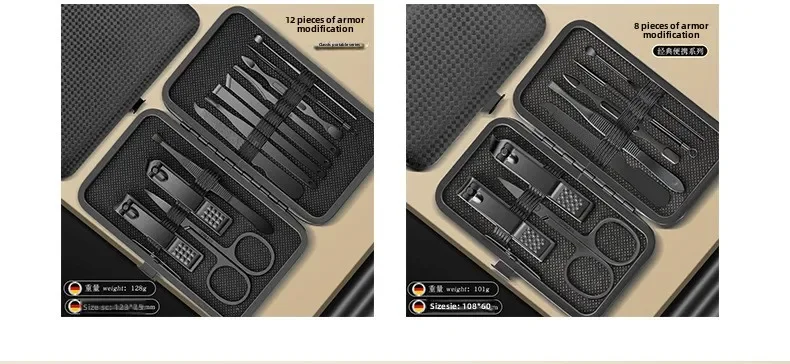 8/12/15/24pcs black Nail clipper set Pedicure knife Stainless steel Nail beauty tool Nail Care Trimmer Portable travel box