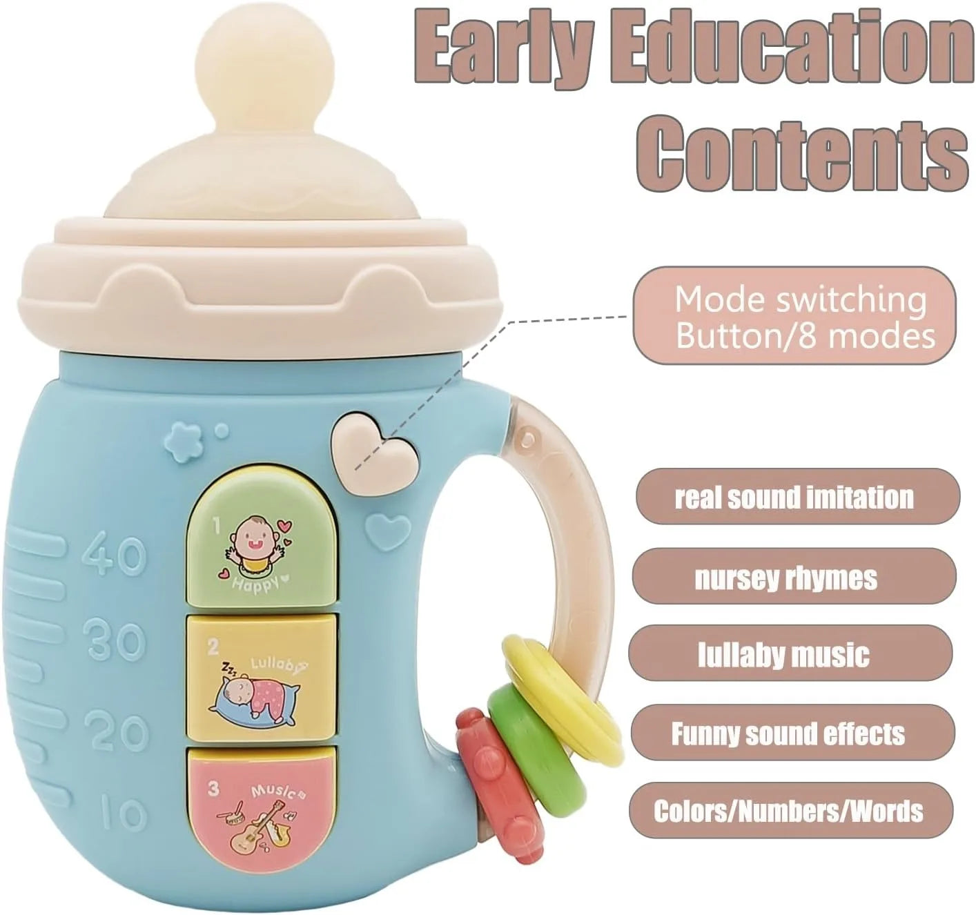 Baby 18M+Cute Bottle Illuminates Music Baby Ringing Soothing Toy Early Learning Education Toy Girl Baby Boy Birthday Gift Toy
