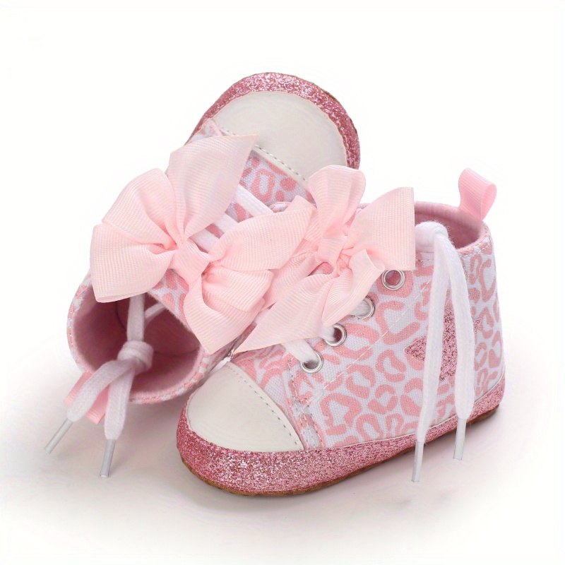 Baby Girls Lightweight Sports Shoes With Bowknot, Comfortable Non Slip Crib Shoes For Toddler Newborn Infant, Spring