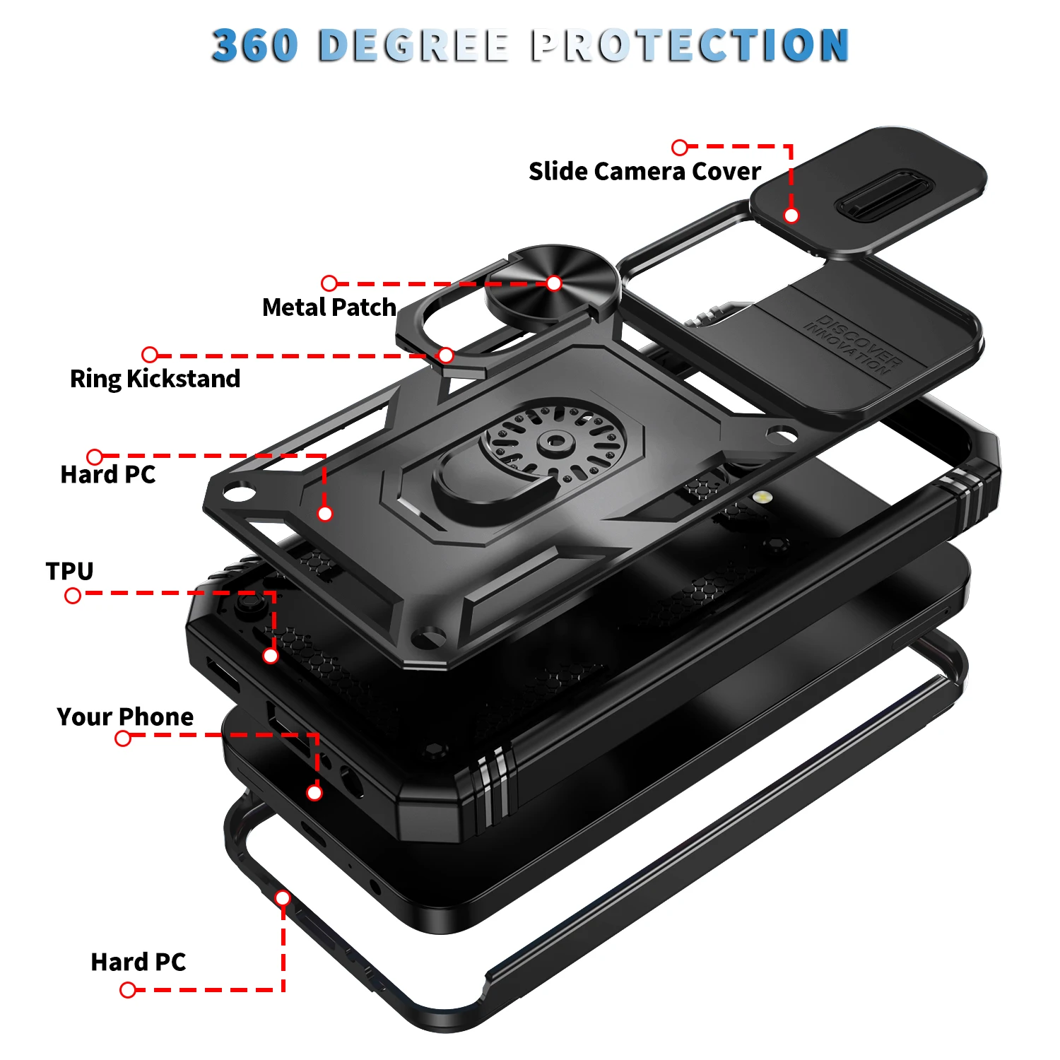 Case For Galaxy A16 A17 A15 A14 A56 A36 A26 A06 A35 A55 A25 A35 A54 A53 Camera Slide Armor Protection 360 Degree Rotate Cover
