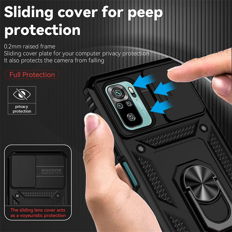 For Xiaomi Poco M5S Case Metal Ring Holder Slide Lens Protect Case For Poko Pocco Poxo Little M5S M 5S 5 S PocoM5S 4G Back Cover