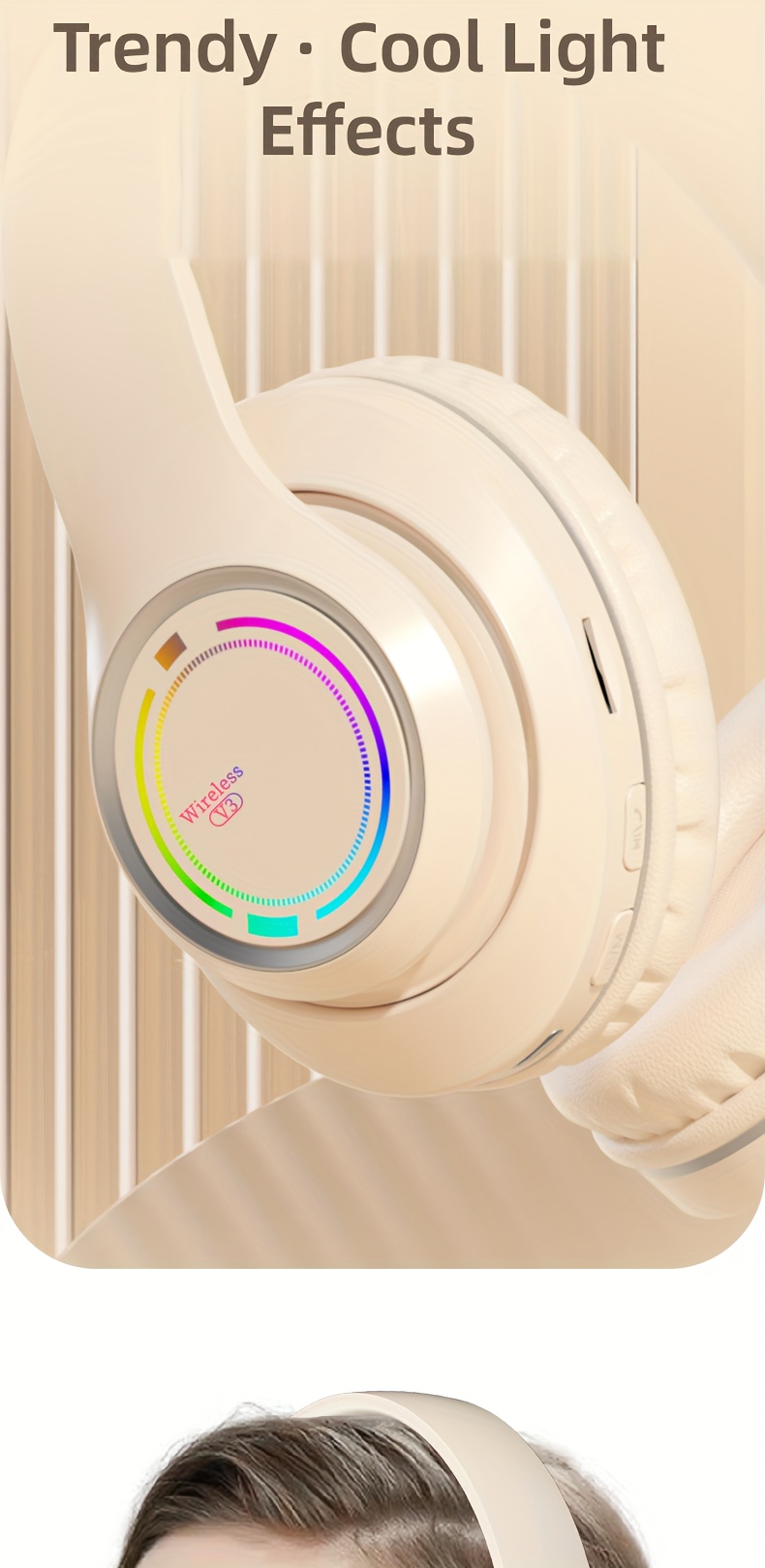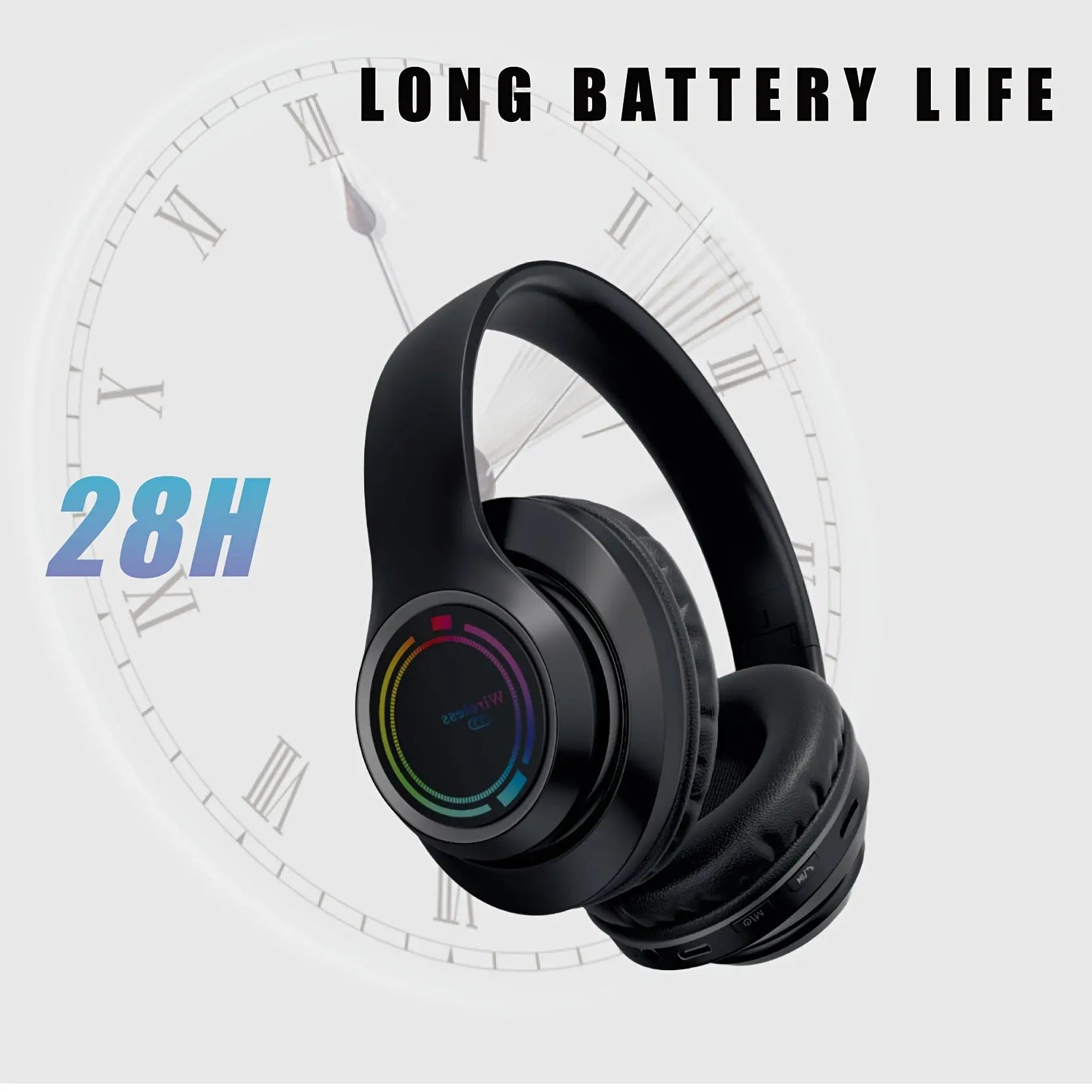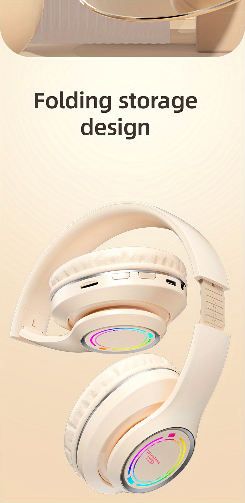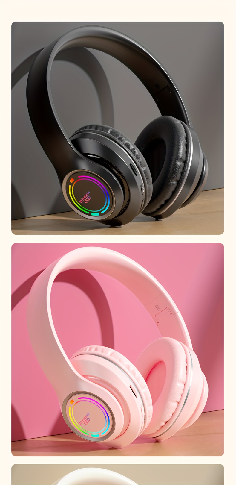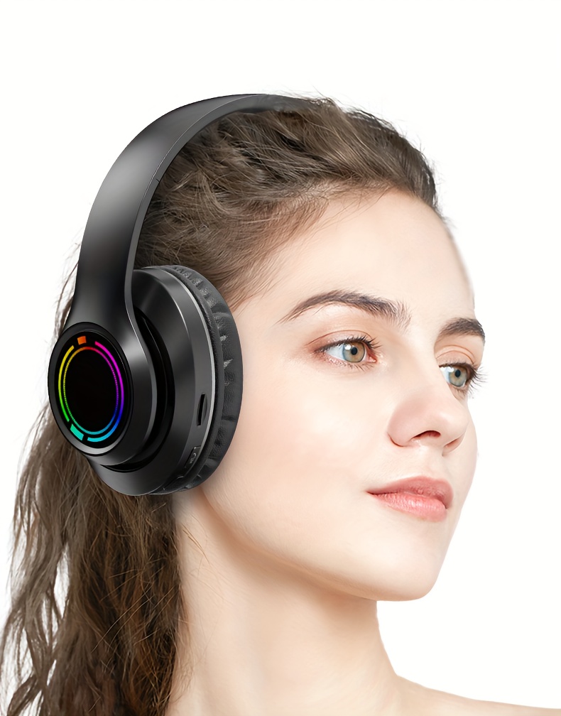 Glowing Wireless Headphones with Multi-Color LED Lights Comfortable And Foldable Design Suitable for Tablets Pcs Tvs And Phones