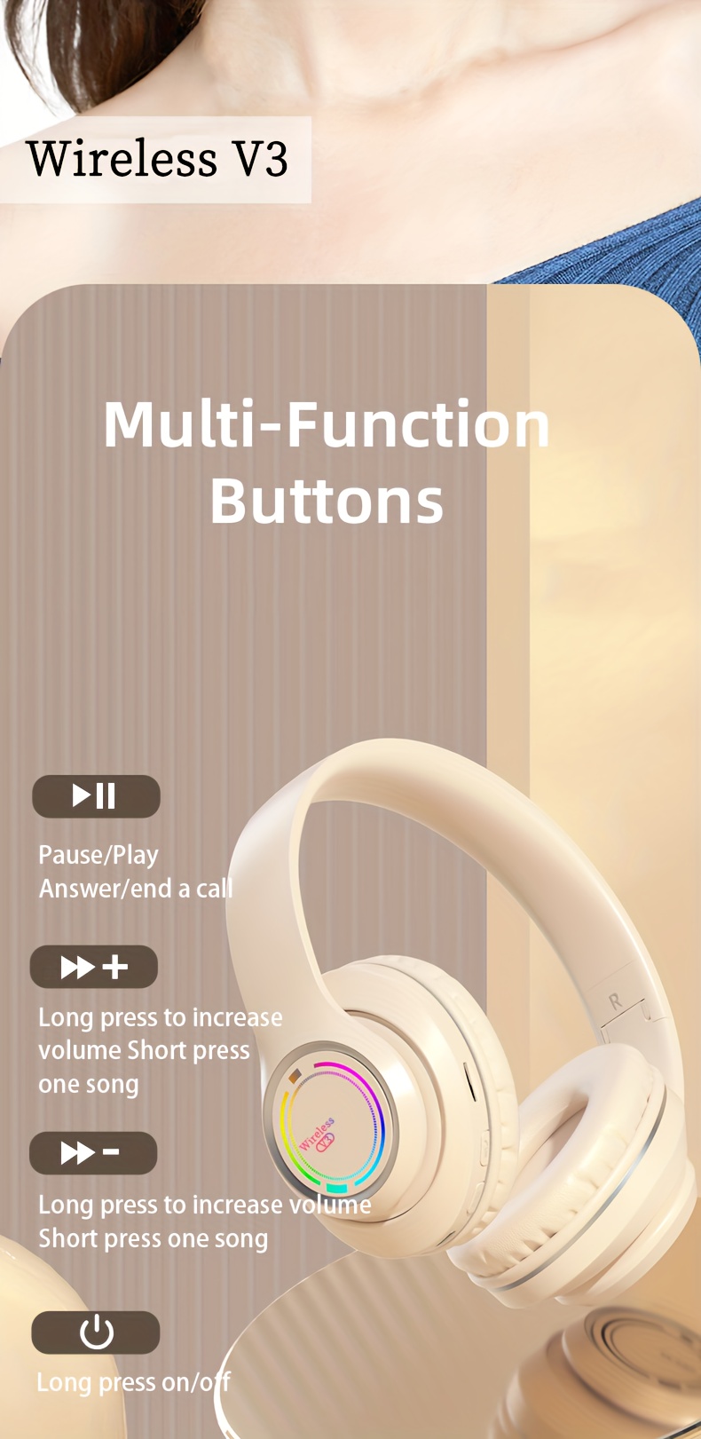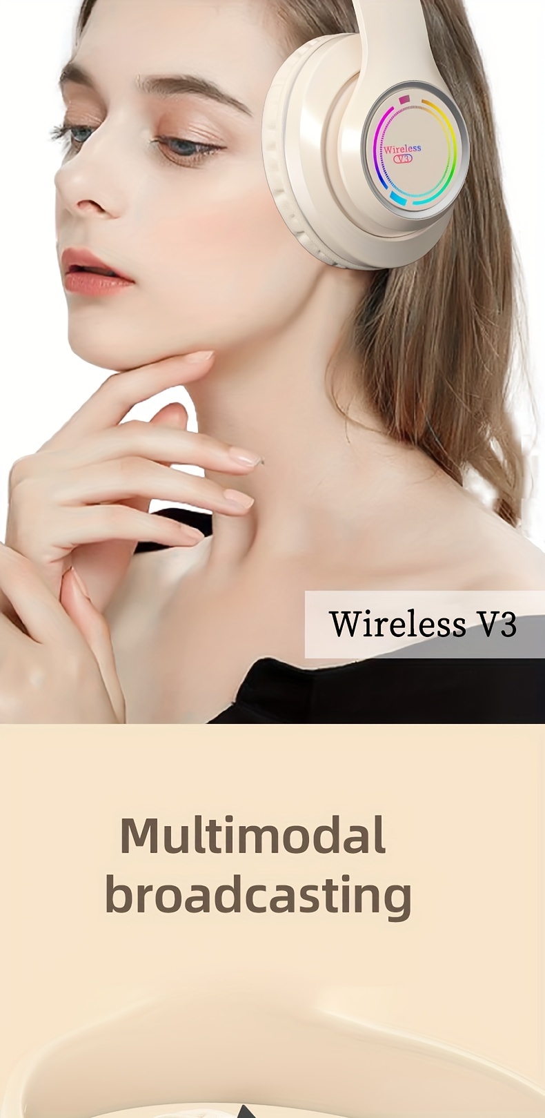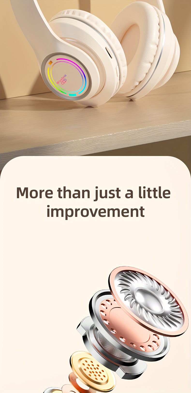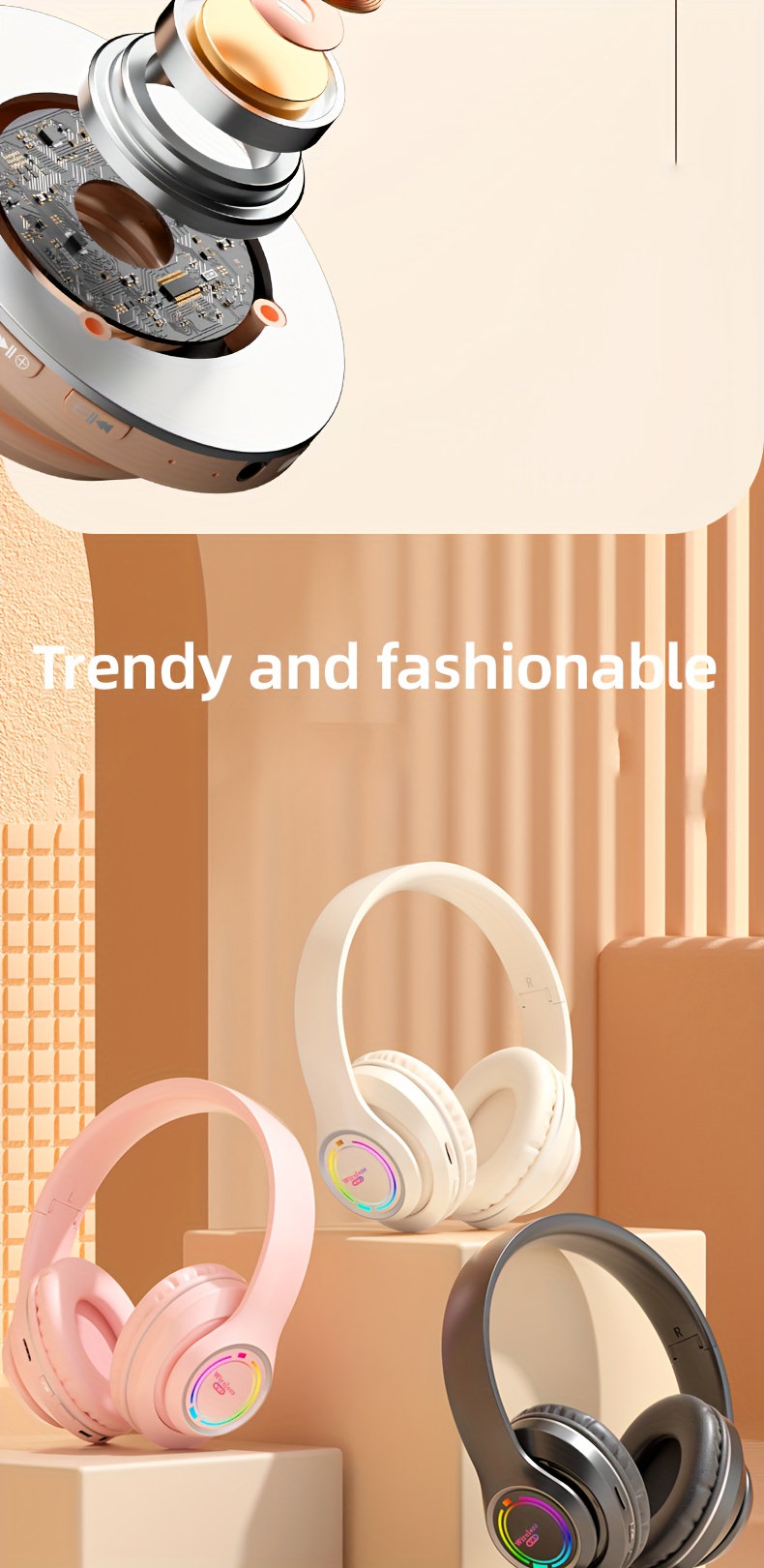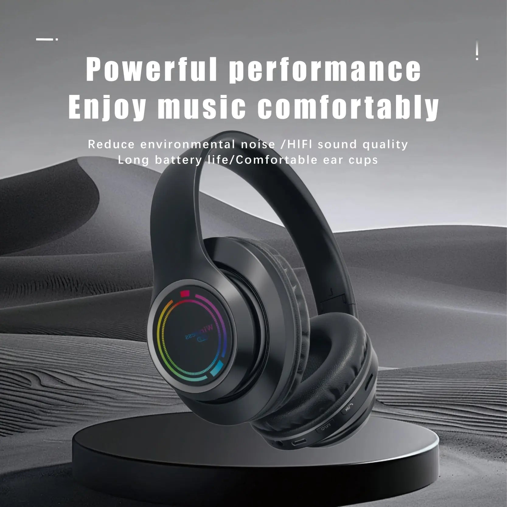 Glowing Wireless Headphones with Multi-Color LED Lights Comfortable And Foldable Design Suitable for Tablets Pcs Tvs And Phones
