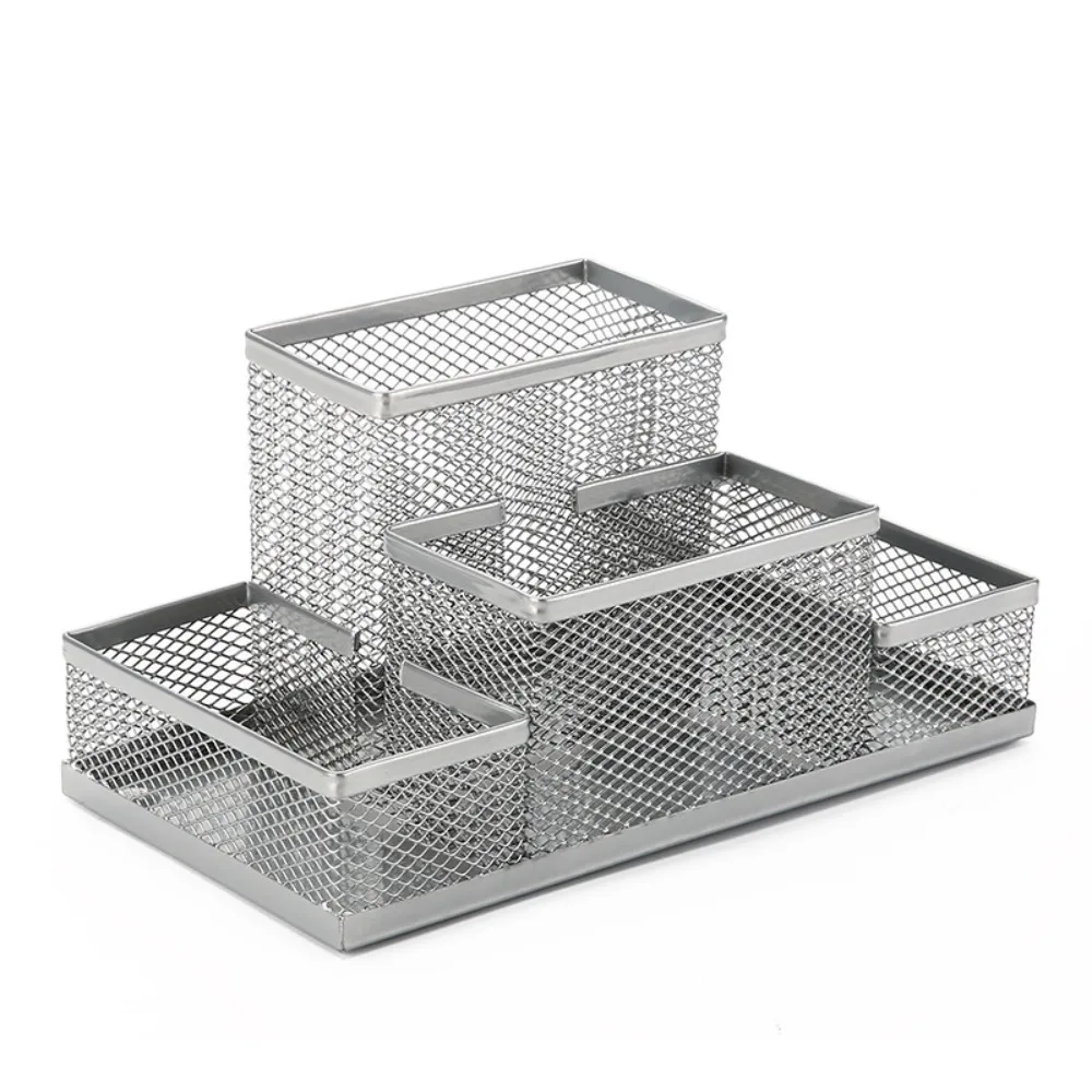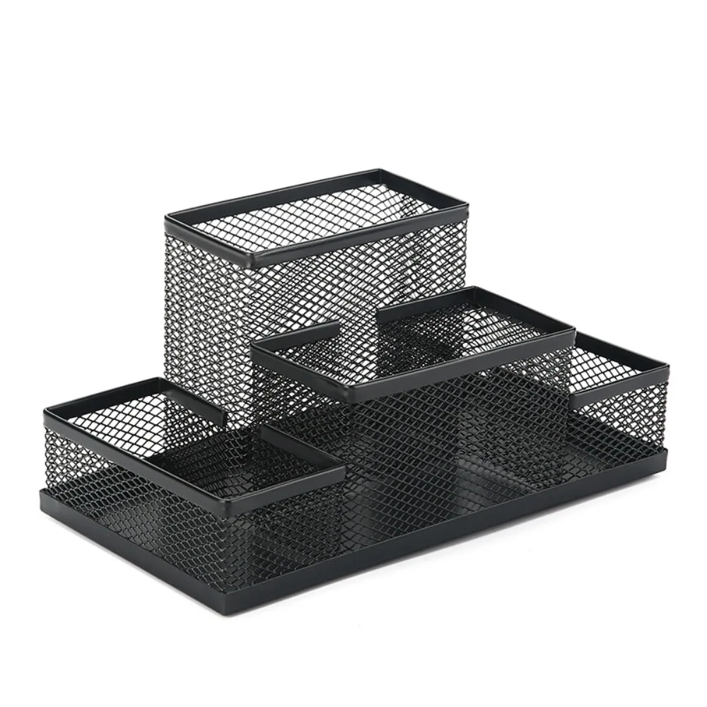 New 3/4 Grids Table Organizer Office Desk Top Storage Box Black Mesh Pen Holder File Storage Rack Metal Pen Holder