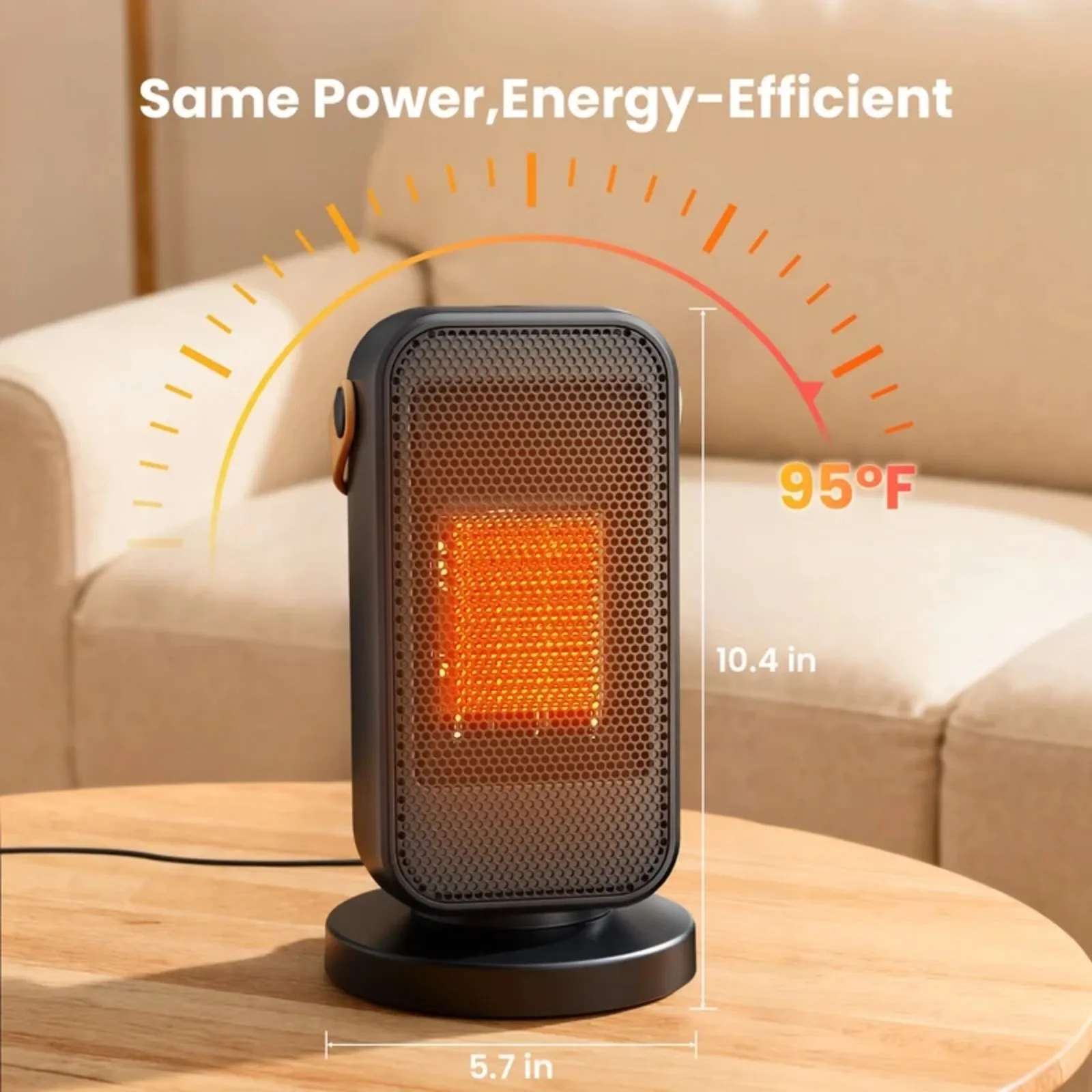 Energy-Saving & Cost-Effective: 3.8W low-heat mode cuts energy waste and lowers bills. This electric space heater balances coziness and efficiency—essential pick for garages or bedroom.
