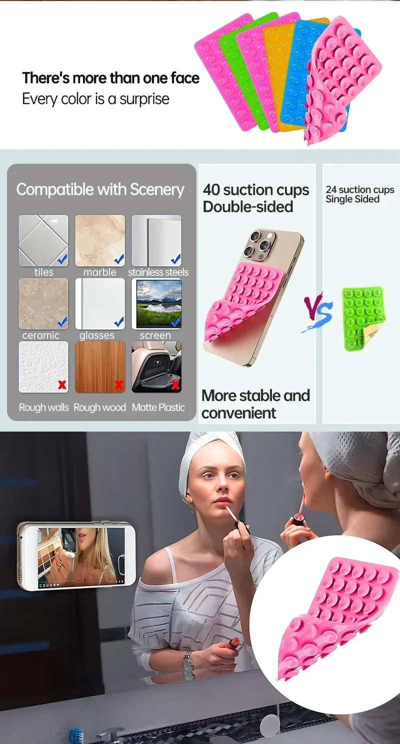 Silicone Suction Cup Phone Holder Multifunctional Fixed Anti-slip Mobile Fixture Double Sided Detachable Phone Rubber Sucker Pad