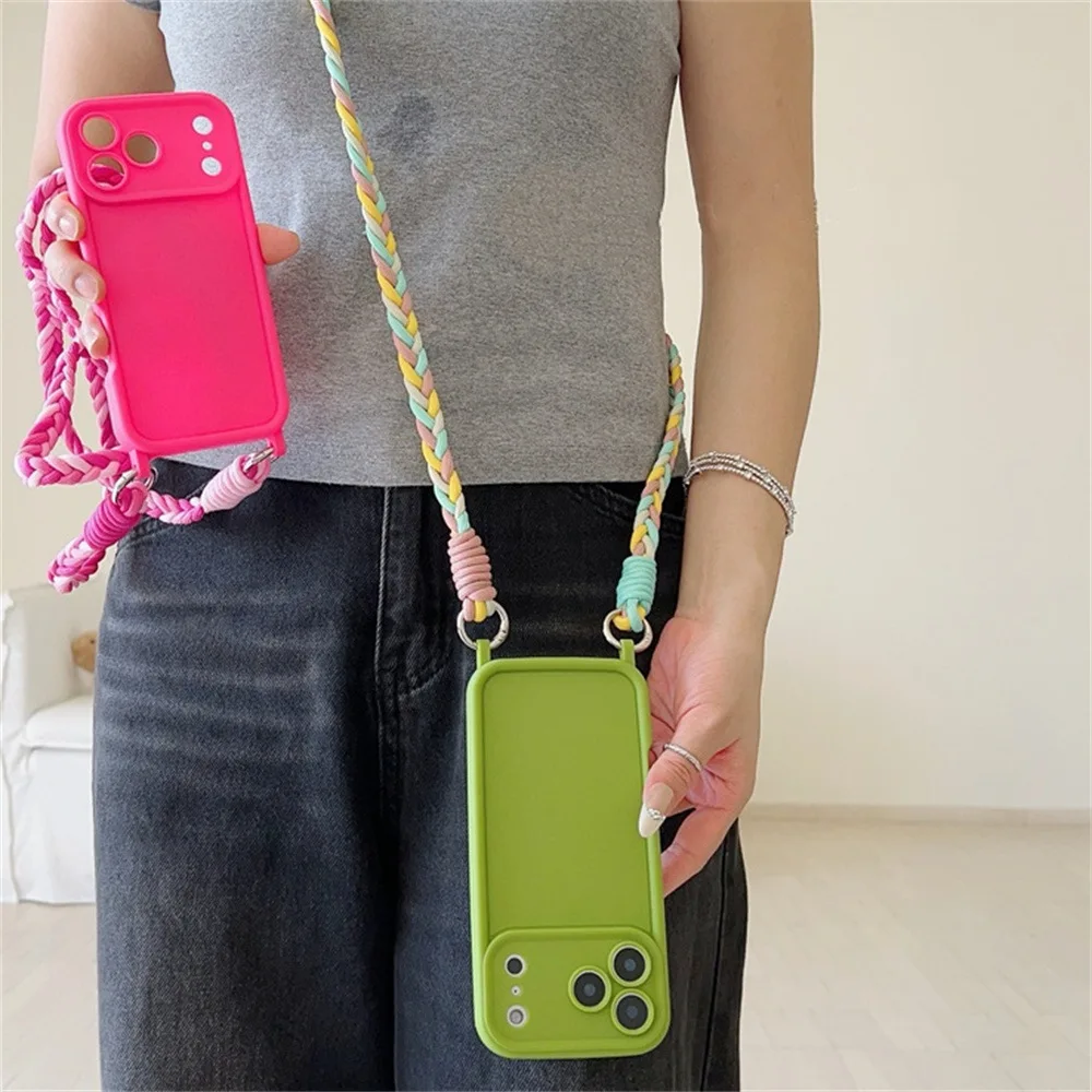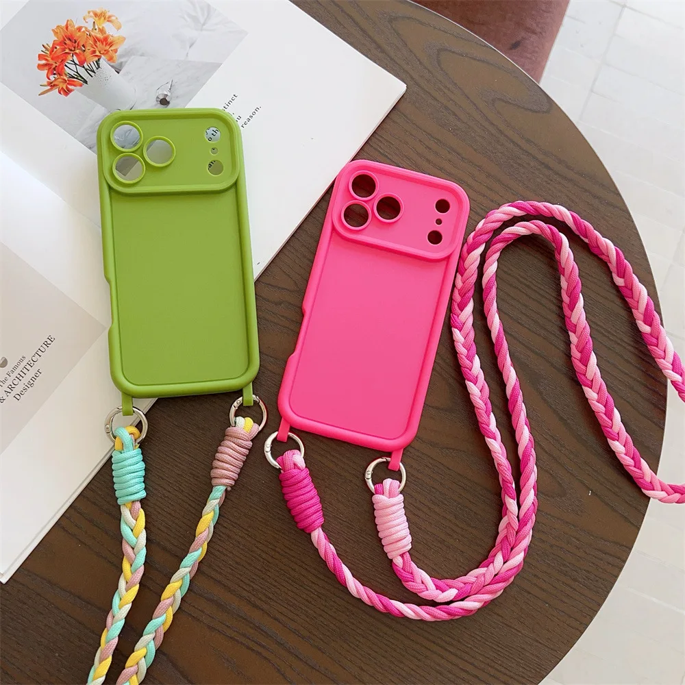 TPU Soft Silicone Crossbody Lanyard Phone Case for IPhone Air 17 16 15 Plus 14 13 12 11 Pro Max SE2022 Rope Necklace Strap Cover
