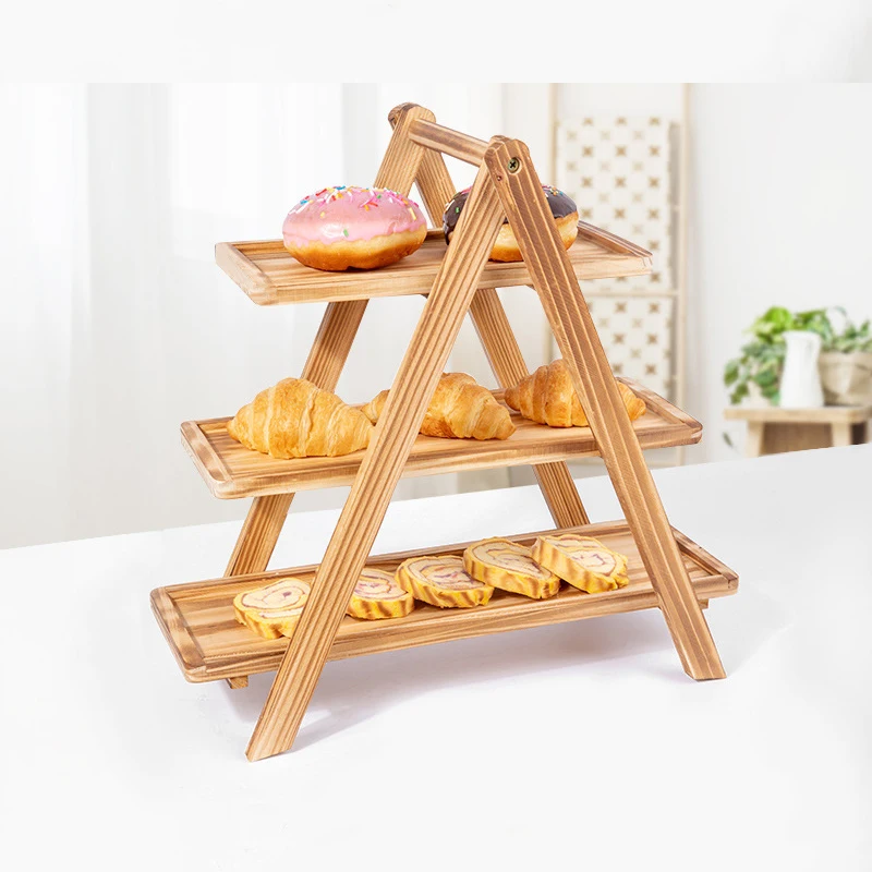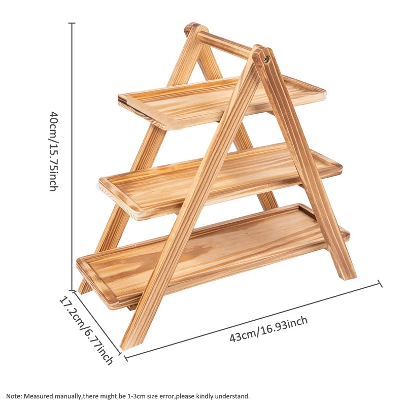 Wooden Three-Layer Serving Trays, Cupcake Stand, Fruit Cake Stand, Dessert Serving Tray, Detachable Rectangle Platter, 3 Tiered